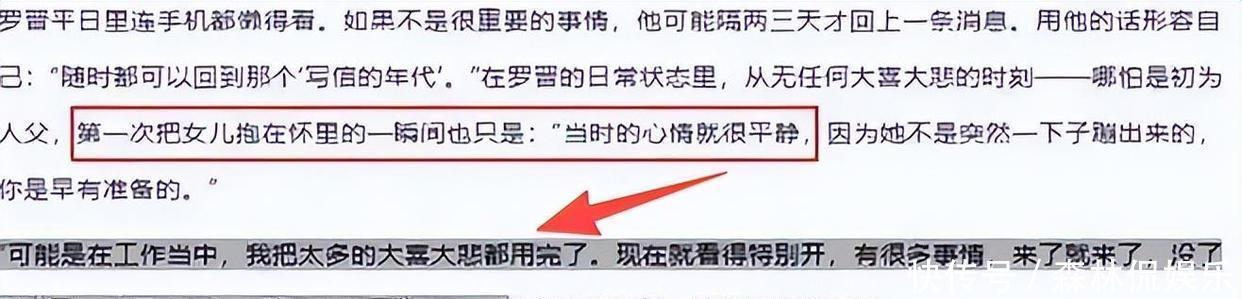 这段时间他拍了大半年的戏都没回家,期间罗晋接受采访时,有人问他当爸爸的感受怎么样,他奇怪地说:“没啥特别的,她不是一下子冒出来的,来了就来了,走了也走了,能咋办?”根本感受不到一点做爸爸的激动,反倒平平淡淡的,让人难以相信,这也让罗晋挨了一顿骂。